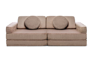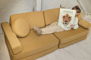 Our play sofas are the most beautiful and built to last, made with care, high-quality materials, and attention to detail. They're special because we take extra time to include features like hidden zippers and strong stitches. This means they're not just great to look at but also sturdy and safe for all kinds of fun.